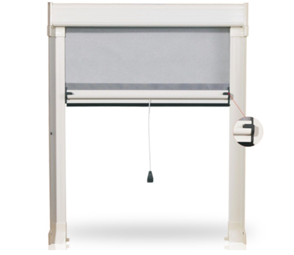 Zanzariera con rete saldata e bottonata, adatta per finestre, a scorrimento verticale a molla.